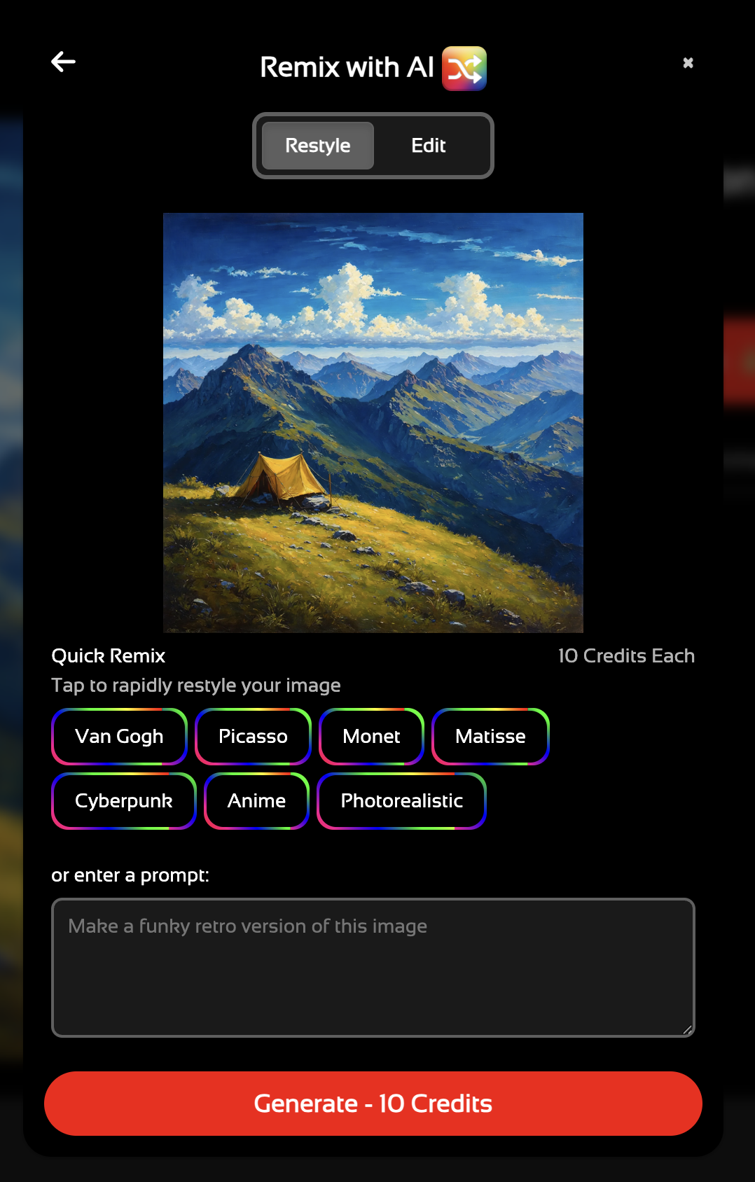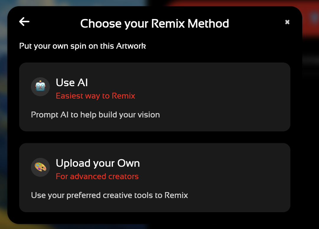 When selecting Remix with AI you can choose one of the quick remix style options or type out your own prompt.
